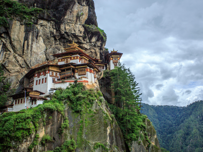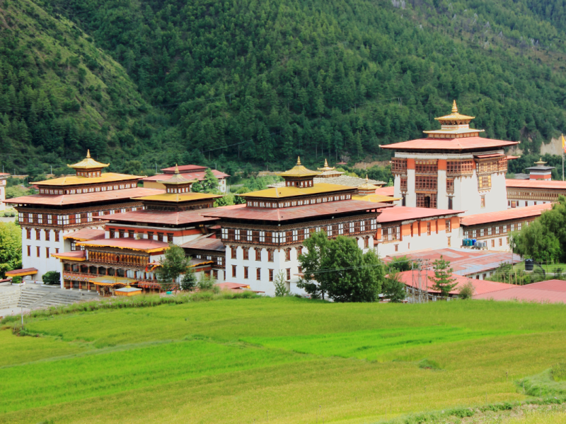 Lunch is enjoyed at a restaurant surrounded by Bhutan’s iconic terraced rice fields. The tour then stops at Dochula Pass, offering breathtaking panoramic views of the Himalayan mountain range.